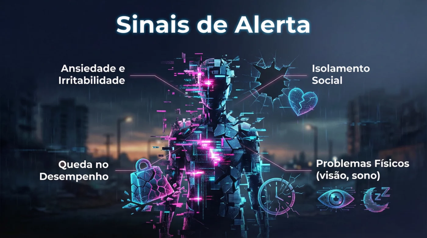Reconhecer o vício em tecnologia é o primeiro passo para buscar ajuda. Se você identifica vários dos sinais abaixo, é hora de considerar uma intervenção profissional: